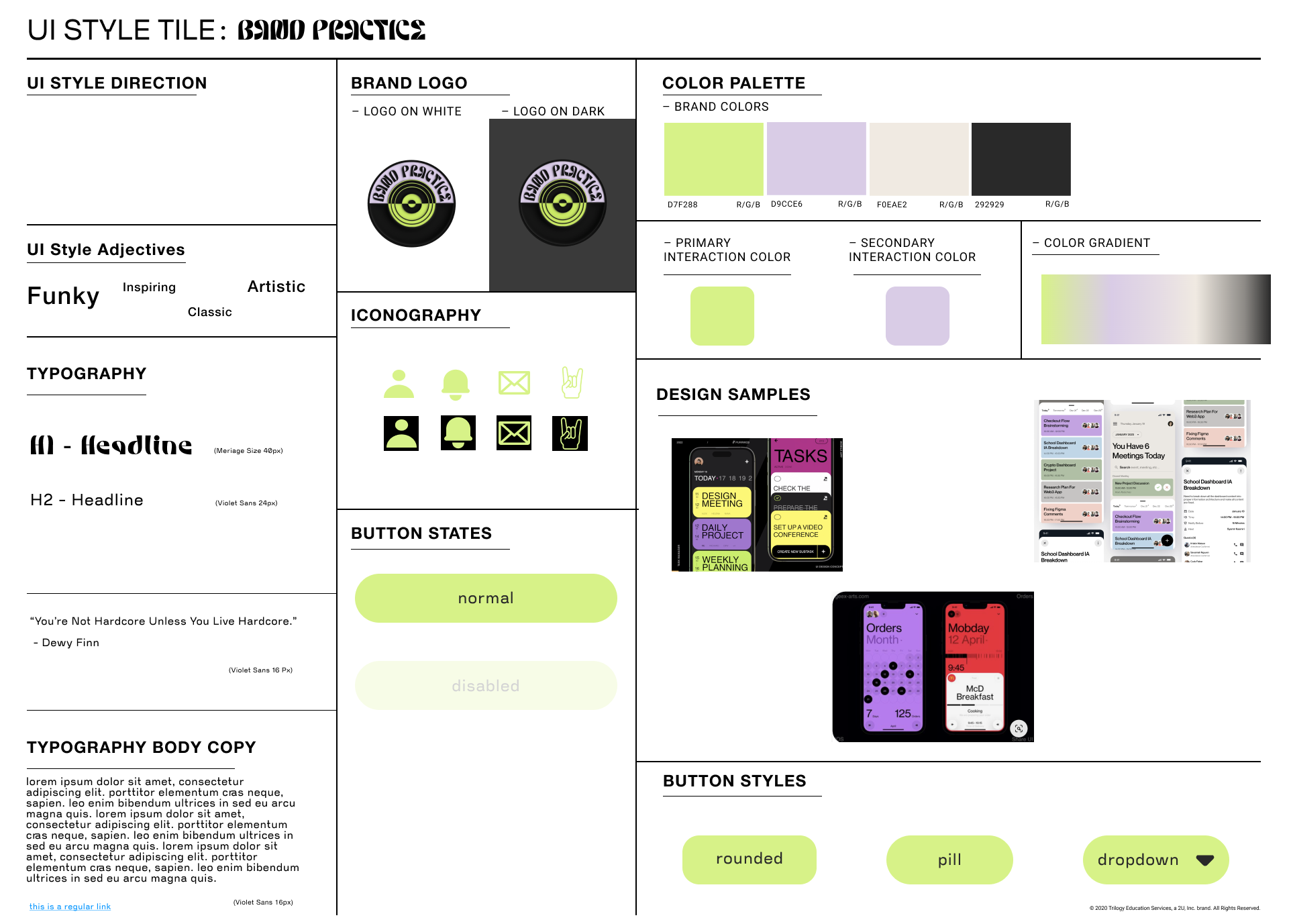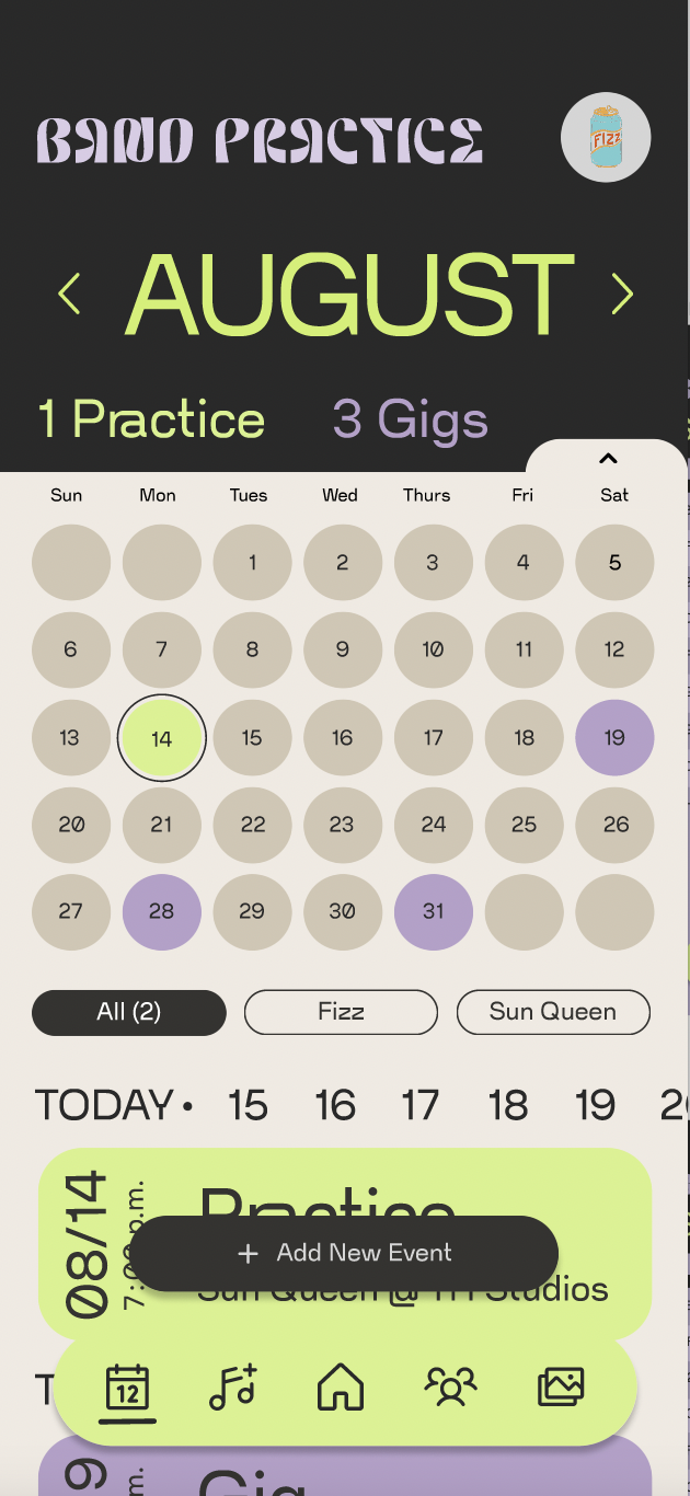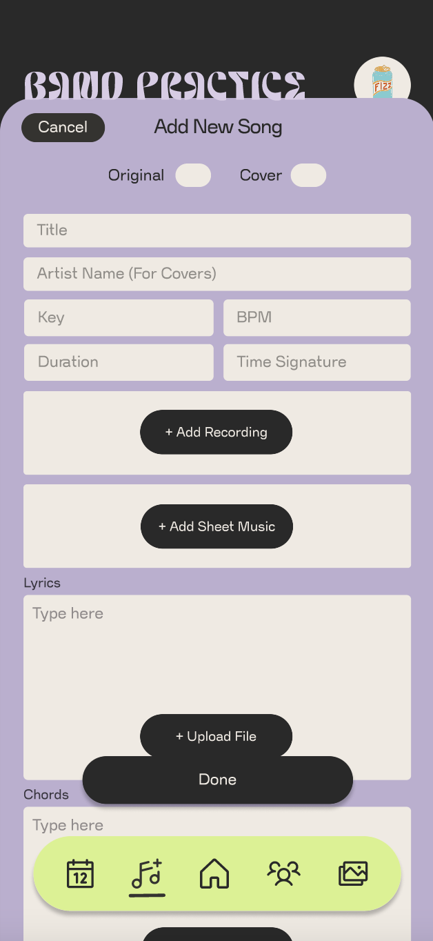 With a small team of 2, I had a major role in every part of the design thinking process. I spearheaded the creation of the song and calendar wireframes, progressing the features from lo-fi to hi-fi through prototyping. I also had a large influence over the UI design, handling color scheme, typography, logo, and other graphics.